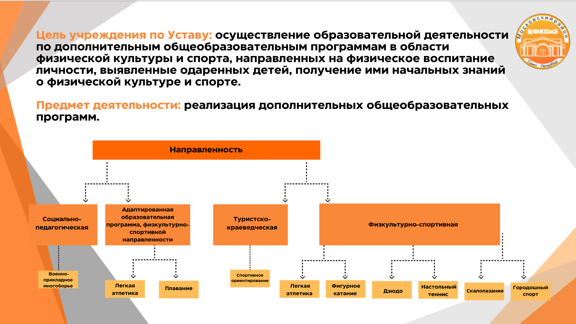 Образовательное учреждение реализует дополнительные общеобразовательные программы в области физической культуры и спорта и дополнительные образовательные программы спортивной подготовки.