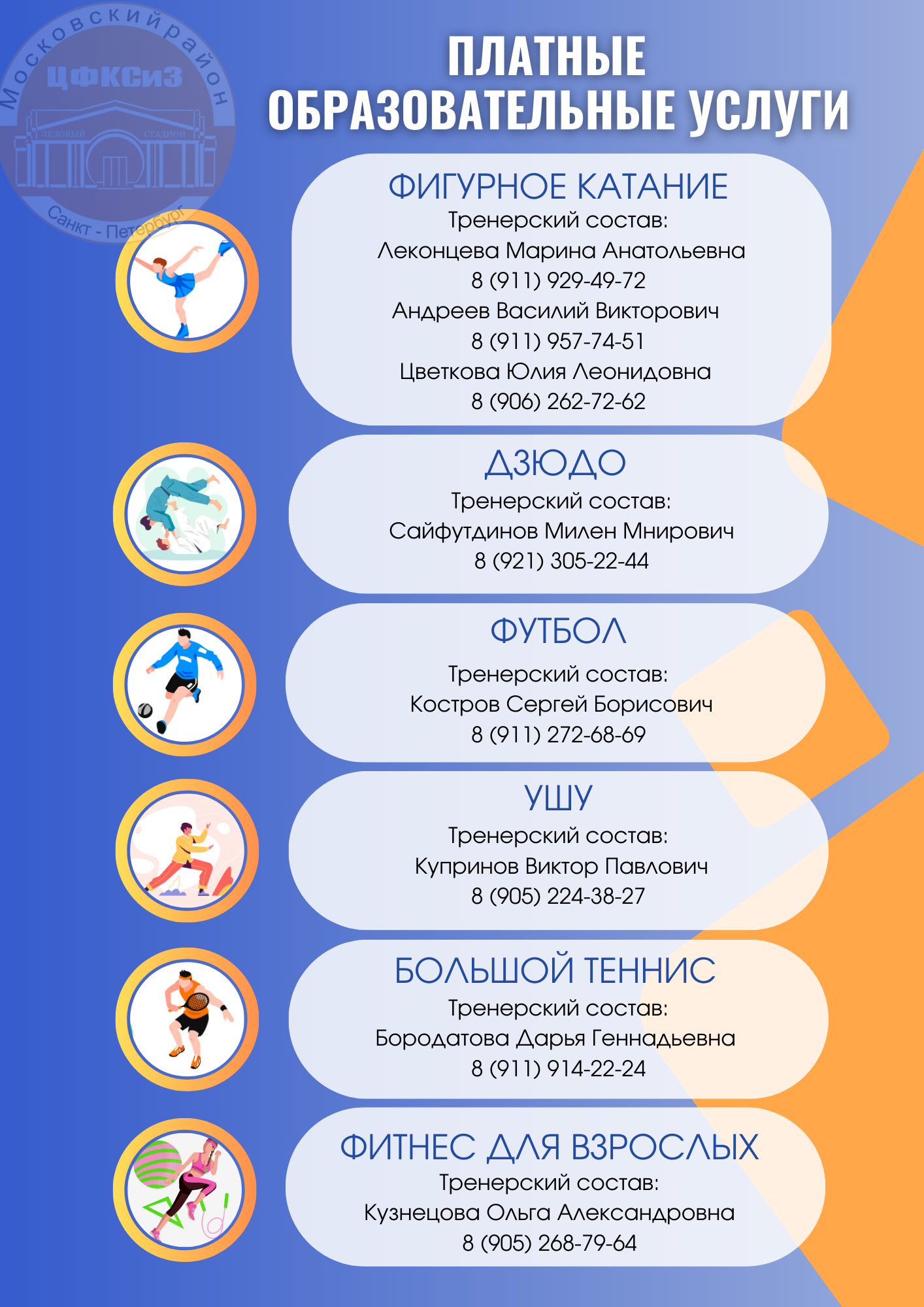Занятия проводят опытные педагоги, тренеры высшей квалификации, мастера спорта, участники и призеры международных соревнований.