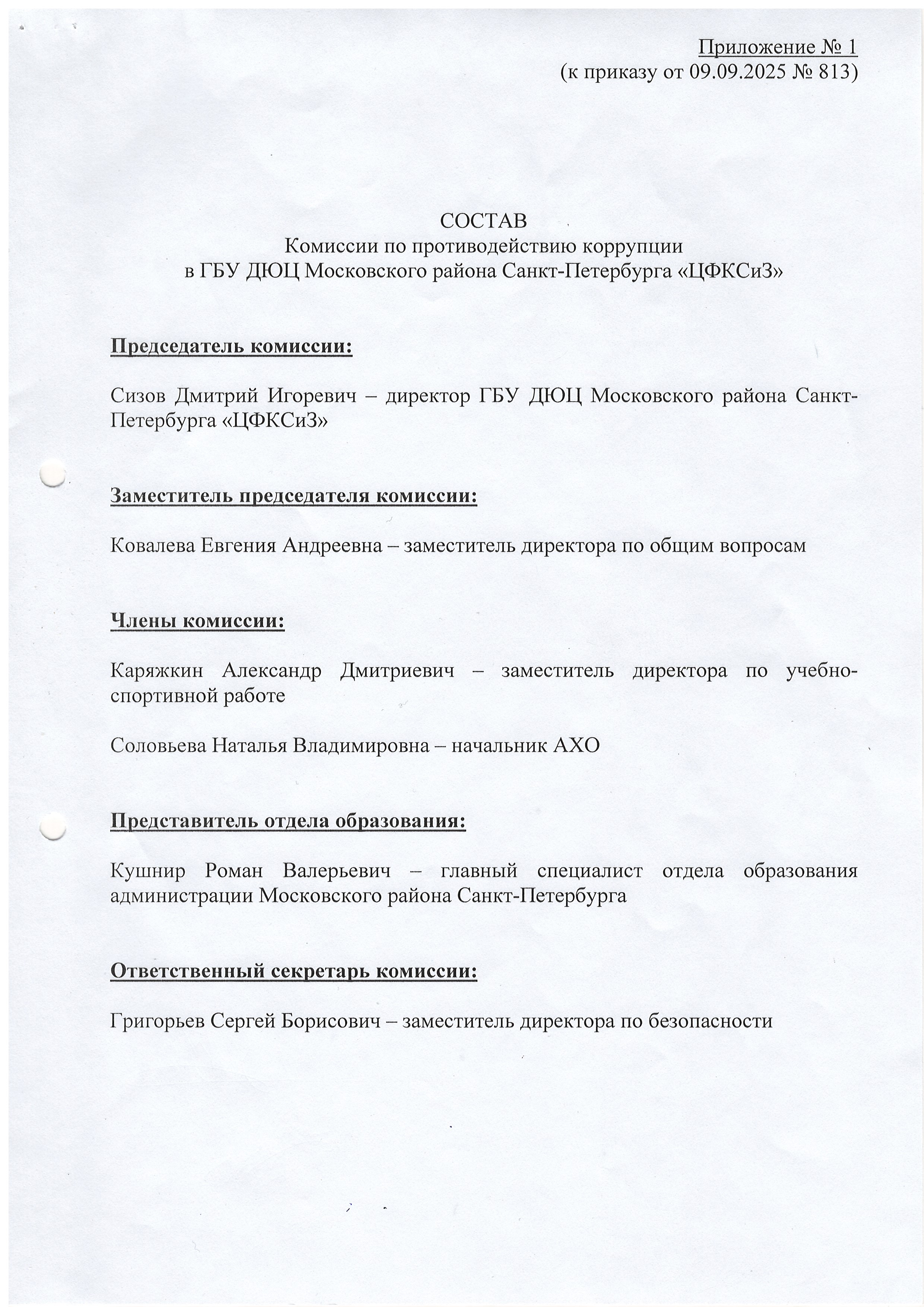 Положение о комиссии по противодействию коррупции в ГБУ ДЮЦ Московского района Санкт-Петербурга "ЦФКСиЗ"