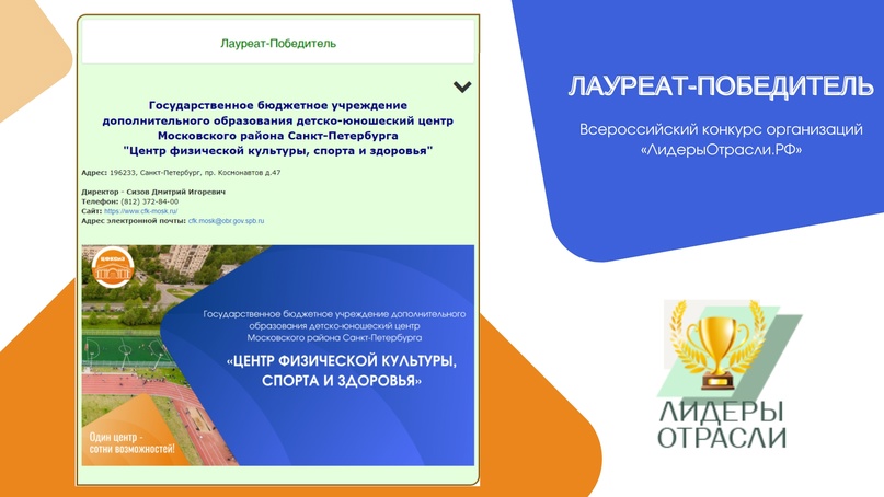 ГБУ ДЮЦ «ЦФКСиЗ» Московского района Санкт-Петербурга занял почетное место и стал Лауреатом-Победителем